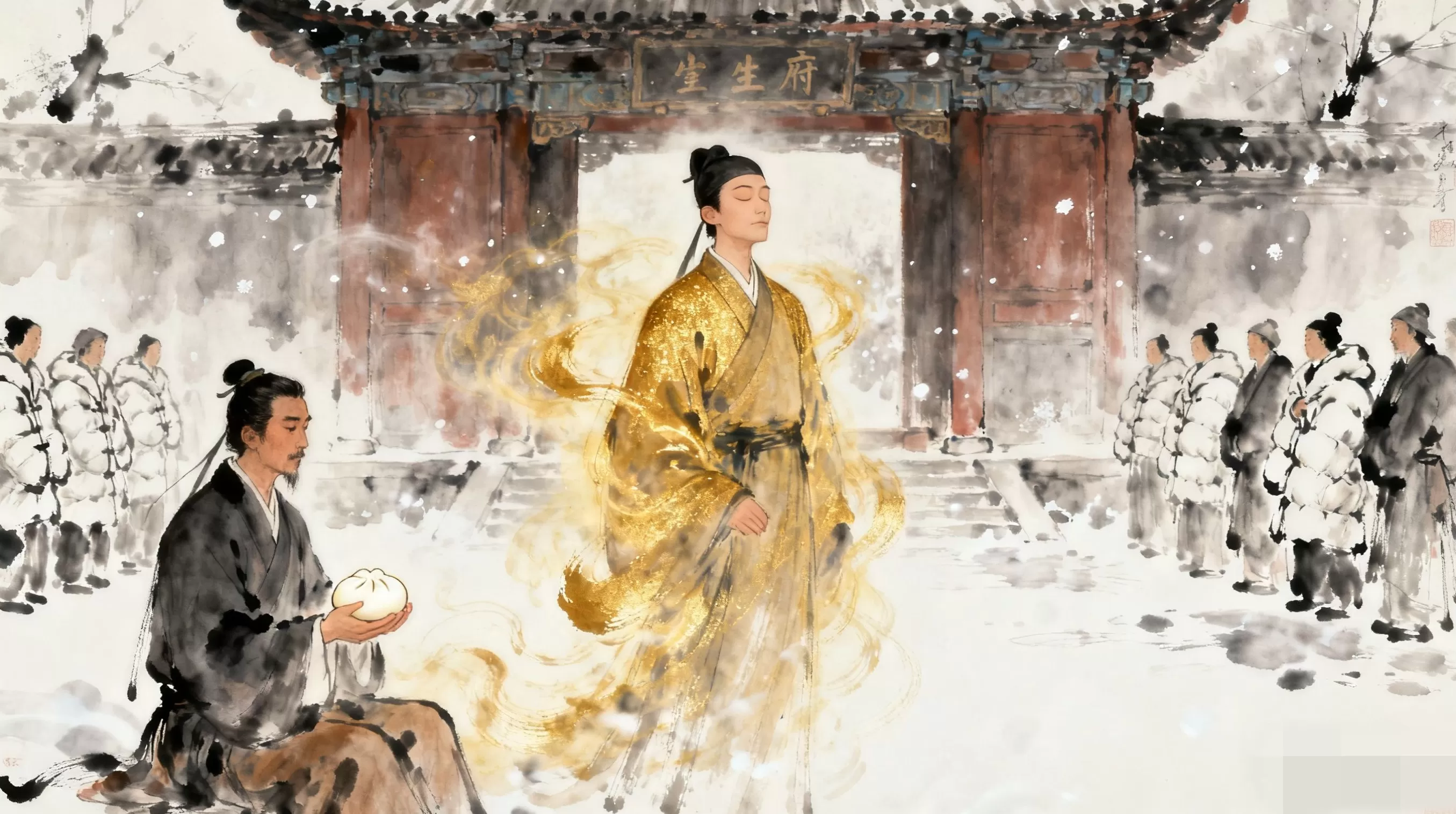 光绪年间,济南府有个叫张善卿的秀才,家境贫寒,却极好面子。这年冬,他上京赶考,盘缠在路上被偷了个干净,只得一路乞讨往回走。天寒地冻,北风像刀子似的刮在脸上,他裹着件打满补丁的单衣,走三步咳两步,眼看就要冻僵在路边。