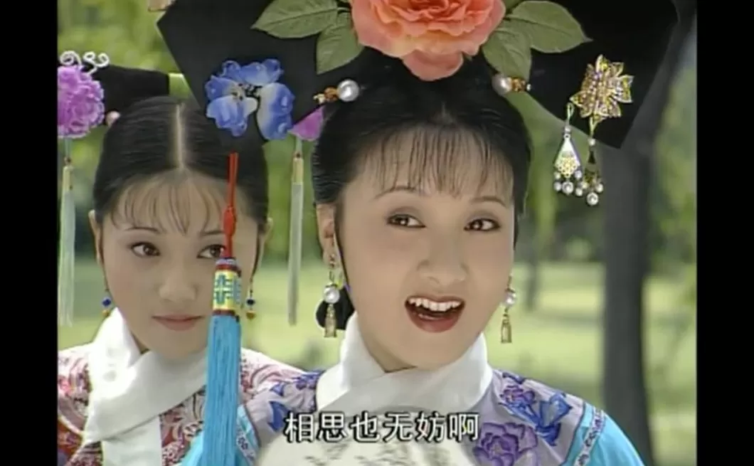 她相当于一个人演了小燕子、紫薇两个角色,一个文静一个活泼。