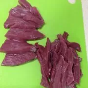 2. 锅中倒入油,油开后爆炒葱段—姜丝—牛肉条—炒熟后倒入辣汤