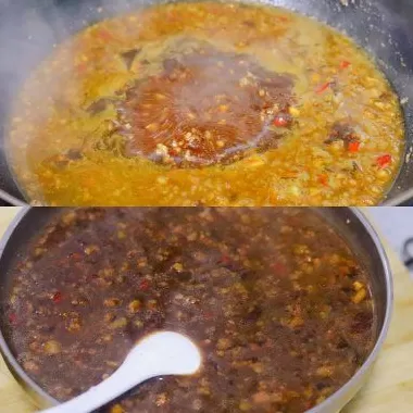 5、大火煮制沸腾转小火收汁,所用的炸酱就做好了。