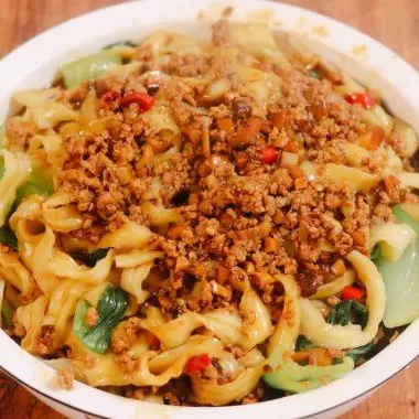 饿的时候就想大口吸溜一碗炸酱刀削面,旺强做的炸酱刀削面香辣美味,百吃不厌。