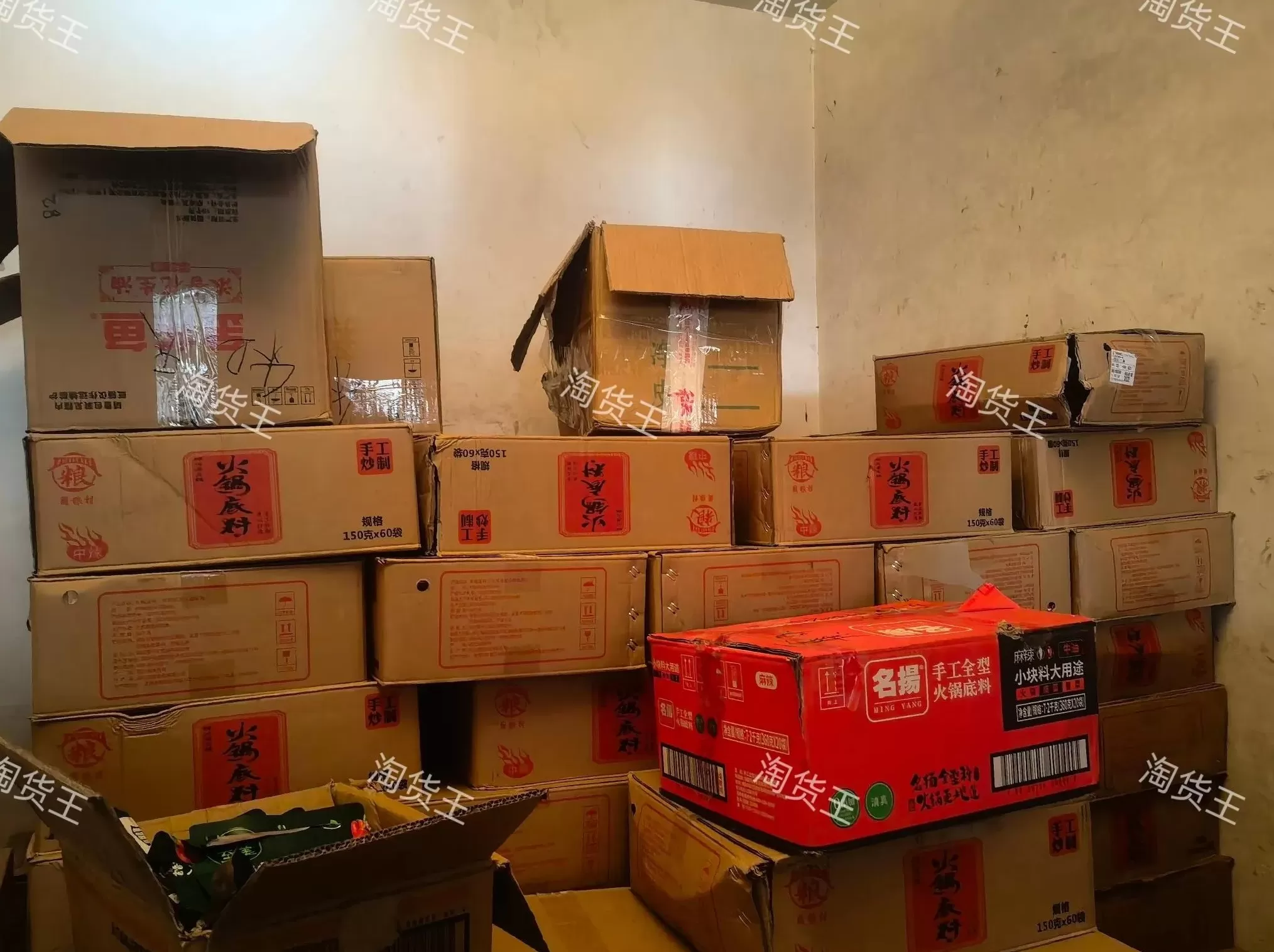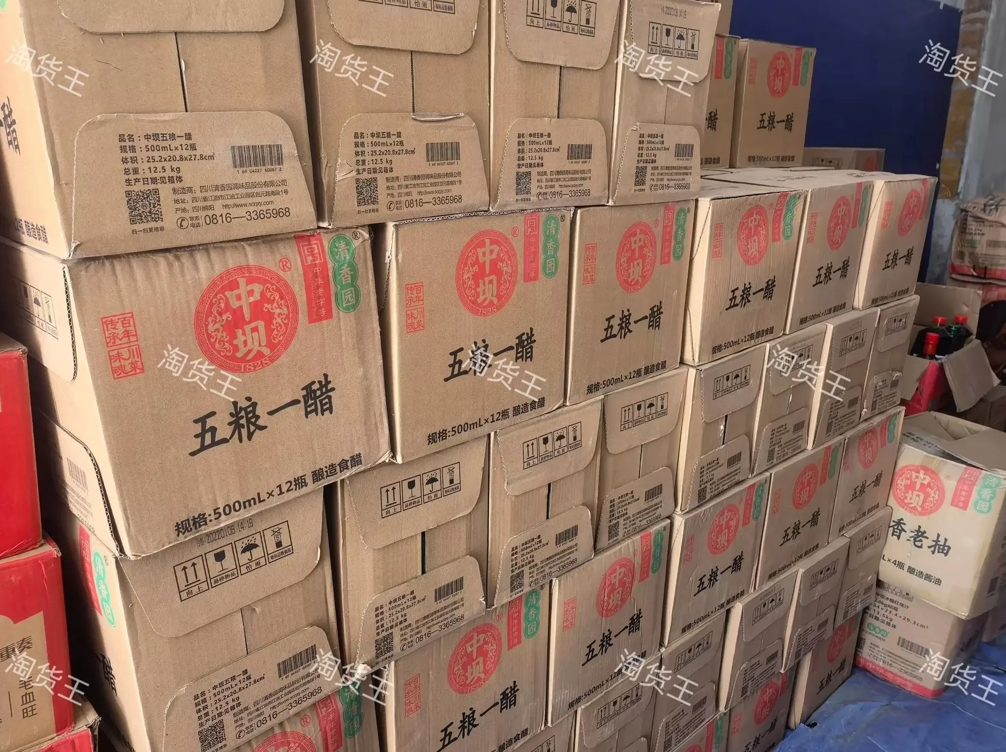 第二家、成都百味之王临期调料仓,在淘货王的库房编码是32312,这家主营临期调料调味品,包括海天、千禾、中坝、保定、太太乐、名扬、桥头、德庄等品牌的调味料批发货源全都有,品类包括酱油、醋、料酒、鸡精、火锅底料(一年四季都有,牛油火锅底料偏多)调味油等,这家支持全国发货。
