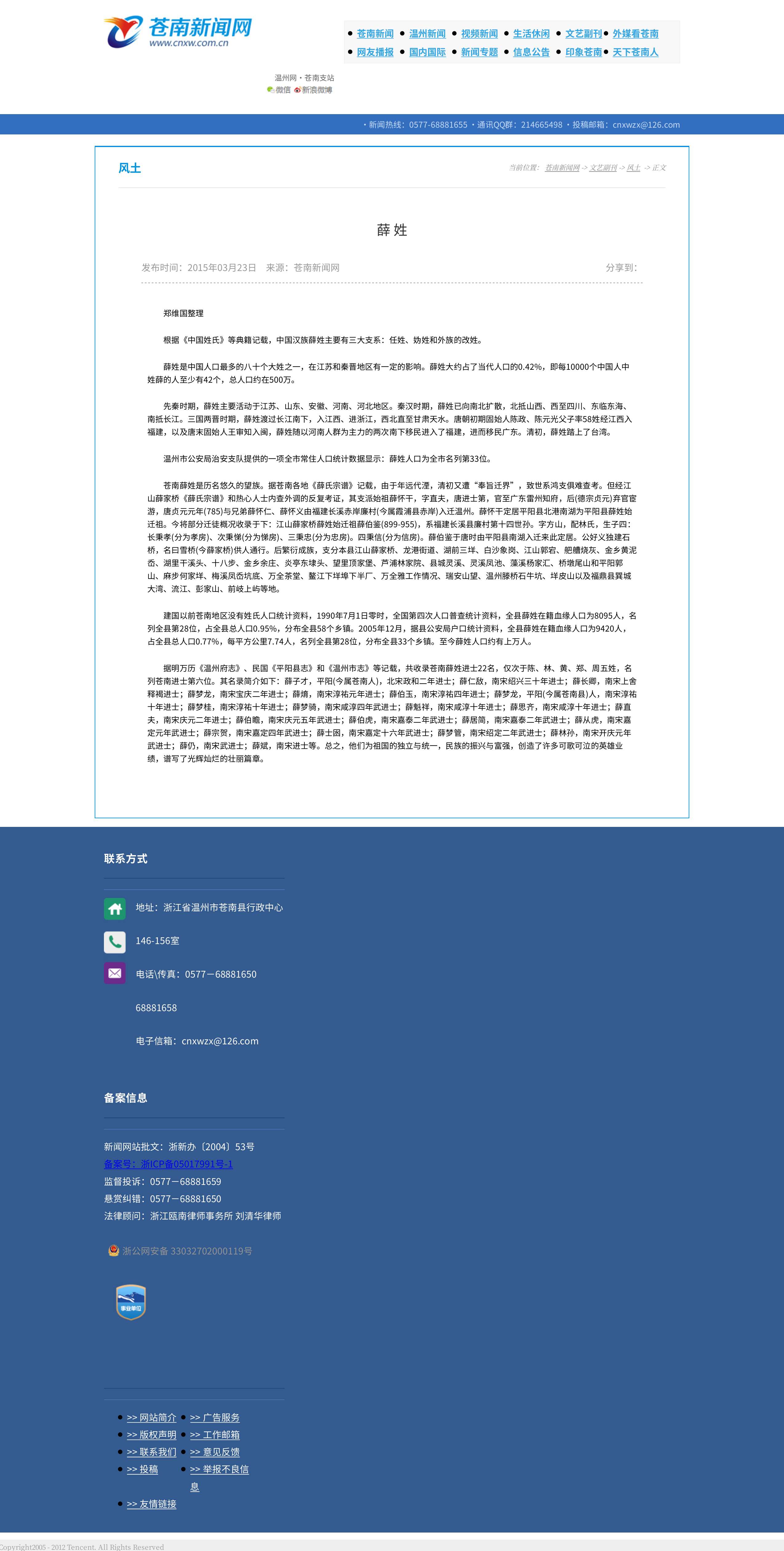 薛姓.苍南新闻网.2023-12-25