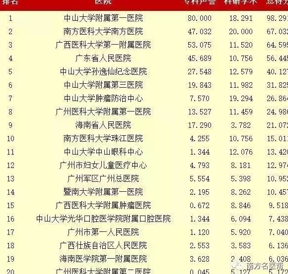 复旦版《2015年度中国最佳医院综合排行榜》和《2015年度中国医院最佳专科声誉排行榜》 近日发布,华南区最佳医院和最佳专科排名也随之出炉,广州多家医院榜上有名!