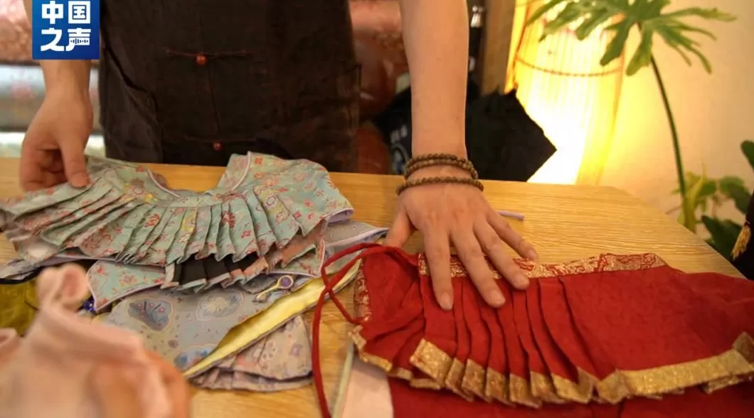 该公司总经理胡鸣一表示,这些“娃衣”用的是国家级非遗服装面料,主要把传统的服装、面料跟潮流结合,让更多年轻人了解传统文化,让传统文化更好地走出海外。