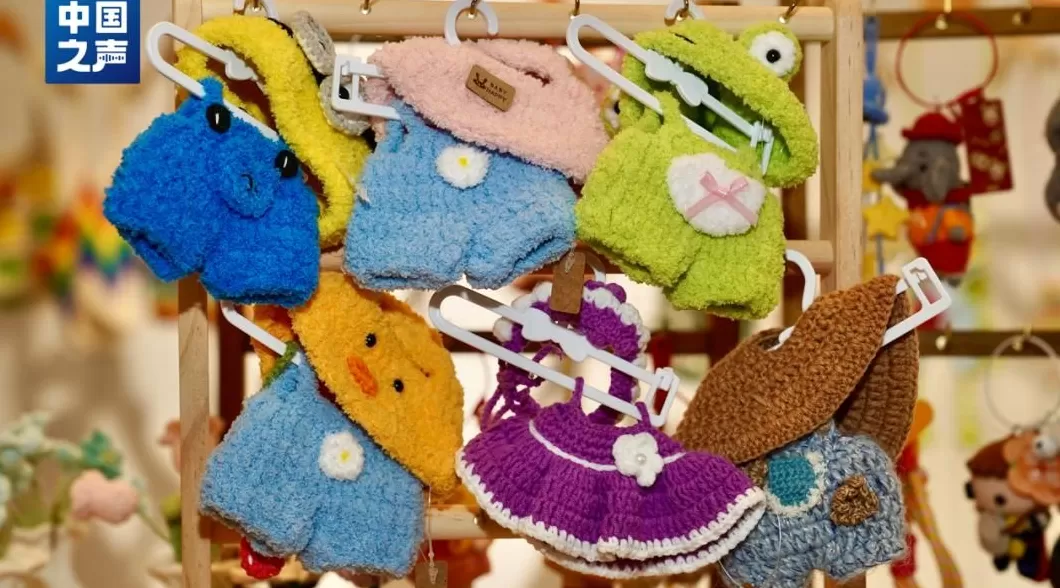 在浙江桐乡,一家开了20多年的老牌服装公司最近开始进攻新赛道——针织文创。货架上的毛线娃娃有的穿着巴掌大的针织毛衣,有的套着针织蓬蓬裙,格外惹眼。五颜六色的毛线在00后设计师手中,变成了一个个精美的小物件。