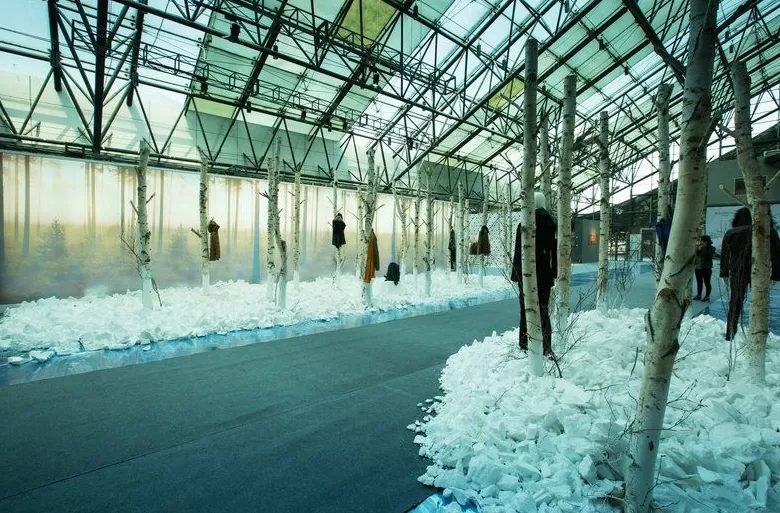 本次订货会最吸引眼球的就是采用实景化设计,把设计主题元素搬到订货会现场,让人身临其境,浮想联翩。远处是雄伟、高耸的麦金利雪山,雪山下一条冰雪融化形成的河流由远而近,两边是茂密的森林,森林间健硕的野马穿梭其间,近处温暖舒适的小木屋里火炉正激烈燃烧着,仿佛能够听到干材爆裂的清脆声响。在雪山、森林、木屋场景边上,各风格16秋冬新品订货区紧紧相连,产品和场景相互融合,相得益彰。