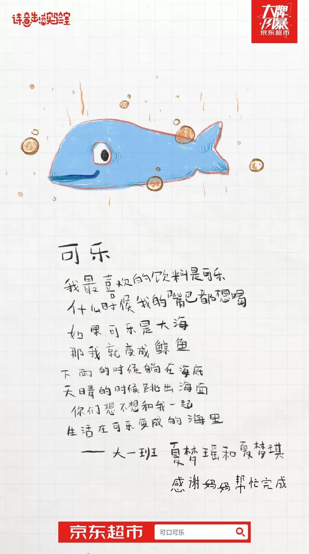 我最喜欢的饮料是可乐什么时候我的嘴巴都想喝如果可乐是大海那我就变成鲸鱼下雨的时候躲在海底天晴的时候跳出海面你们想不想和我一起生活在可乐变成的海里——夏梦瑶和夏梦琪 大一班
