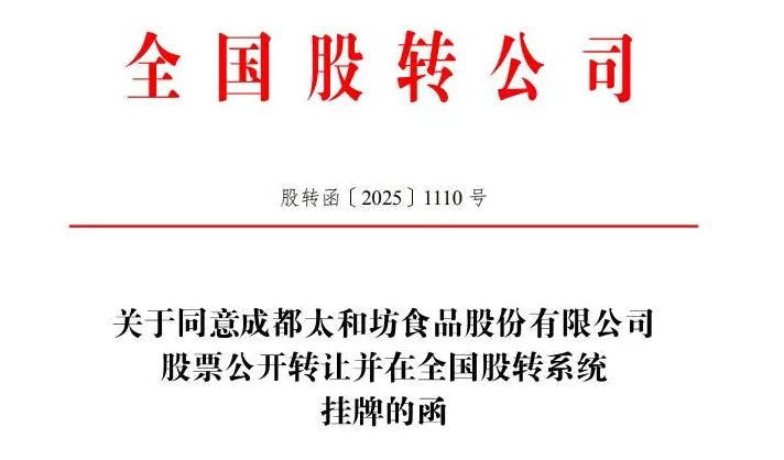 近日,成都太和坊食品股份有限公司(下称“太和坊”,证券代码:874750)成功挂牌新三板。