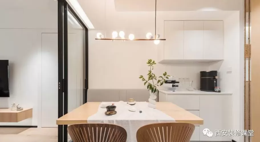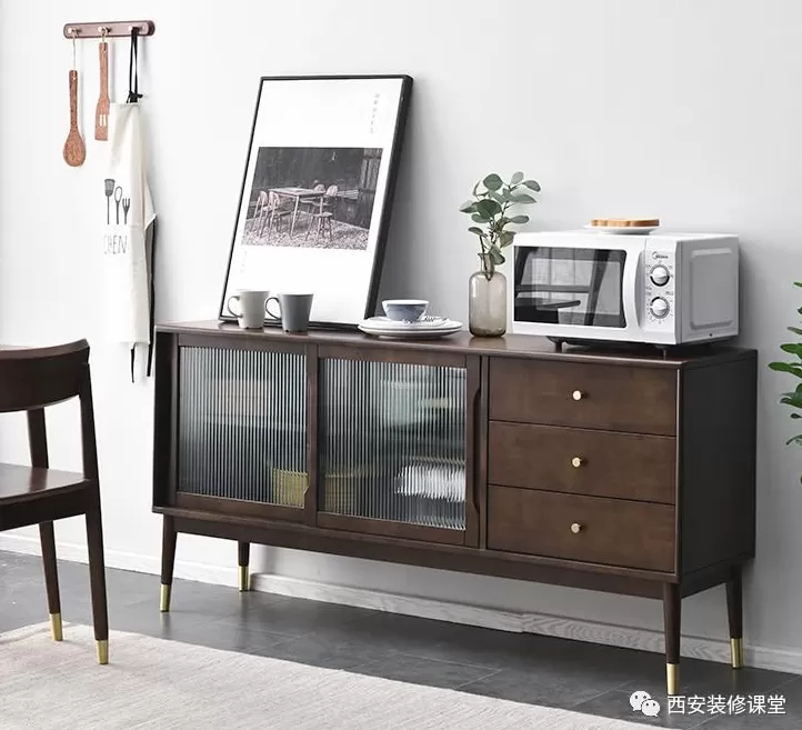 ▲如图可以利用过道角落一个斗柜布局,用来满足家庭简单的水吧台功能