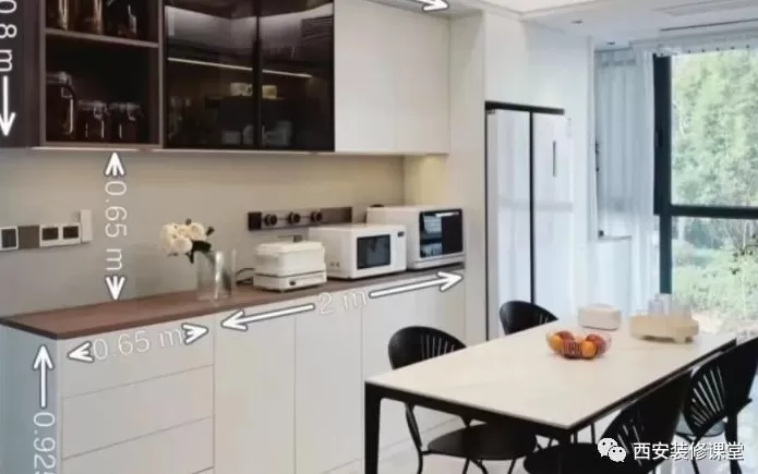 2、吧台应具有多少长度才方便使用呢?一般来说,最小的水槽需长60cm,操作台面60cm,其他则按自己的需要度量即可。