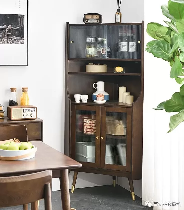 ▲还可以利用角柜水吧柜,利用餐厅的角落就可以满足一个水吧台的空间,而且成品这种搭配可以和餐桌一体呼应起来,最重要的角落水吧柜的布局,不影响成品餐边柜的放置,拓展更多功能和收纳