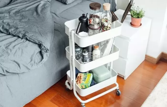 ▲甚至可以随时移动到卧室里头,也是没有问题的,对于小户型实用,对于大户型家里固定水吧台比较远,晚上的时候,可以利用小推车满足一个小型水吧台的功能,不用长距离到固定水吧台位置