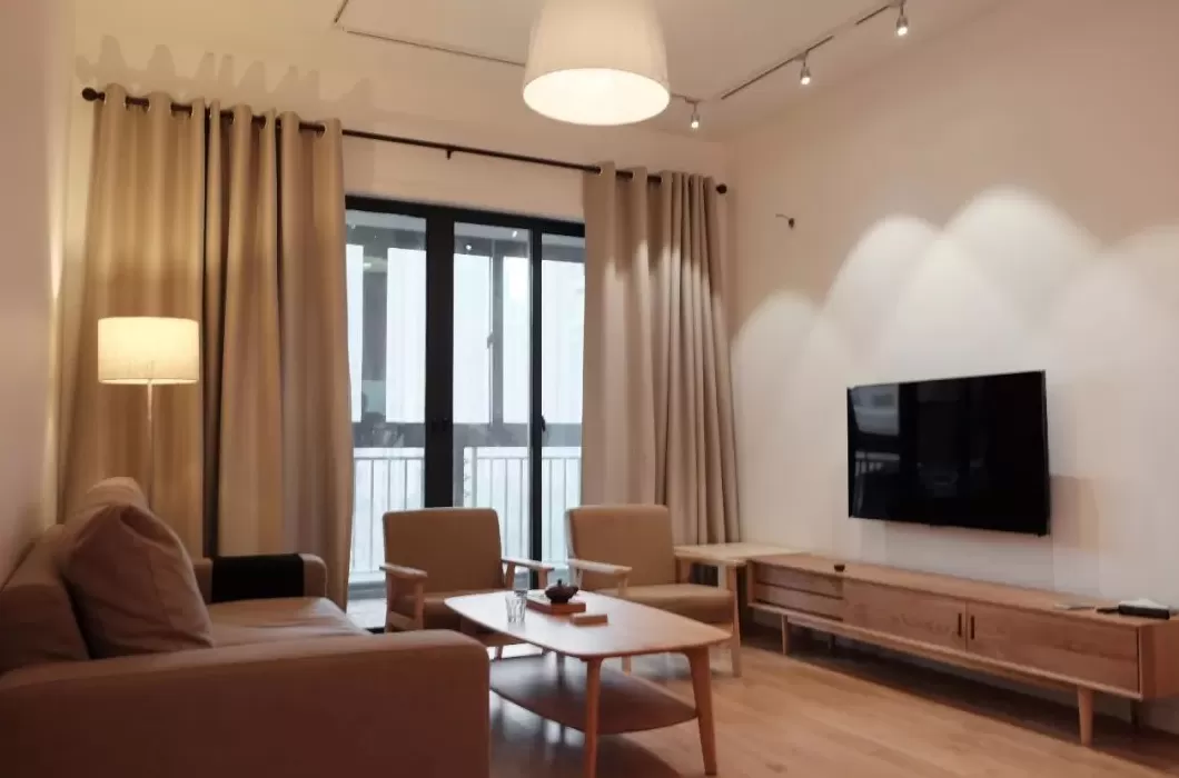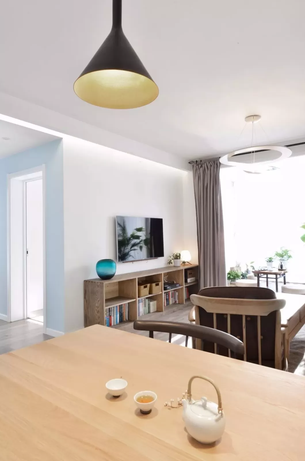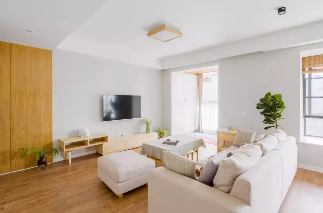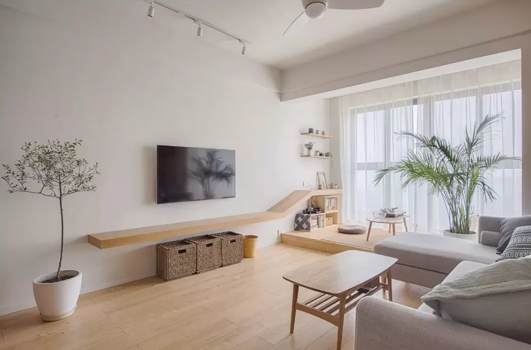 简洁大方的电视墙布置,在电视柜上摆上禅意精致的花瓶,简简单单的布置,也能让空间显得端庄气质。