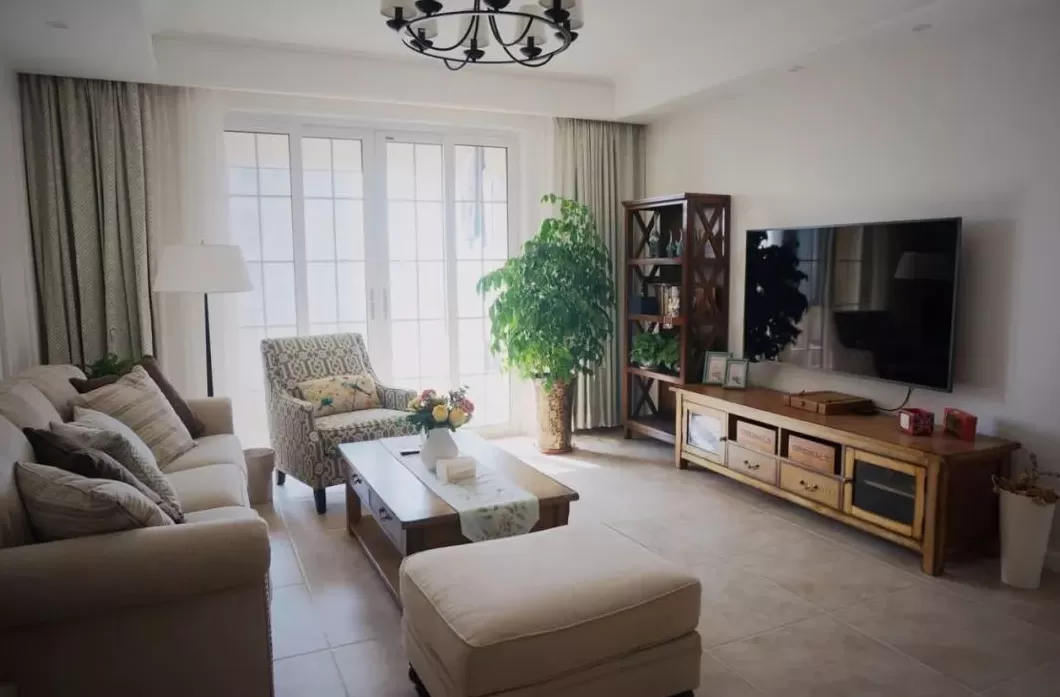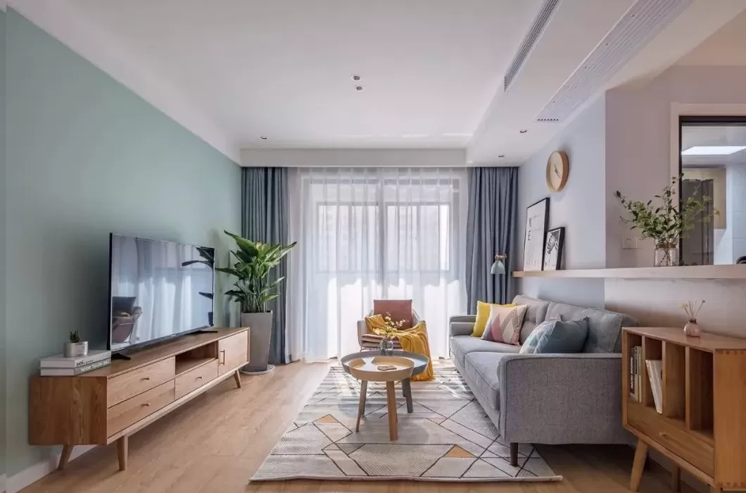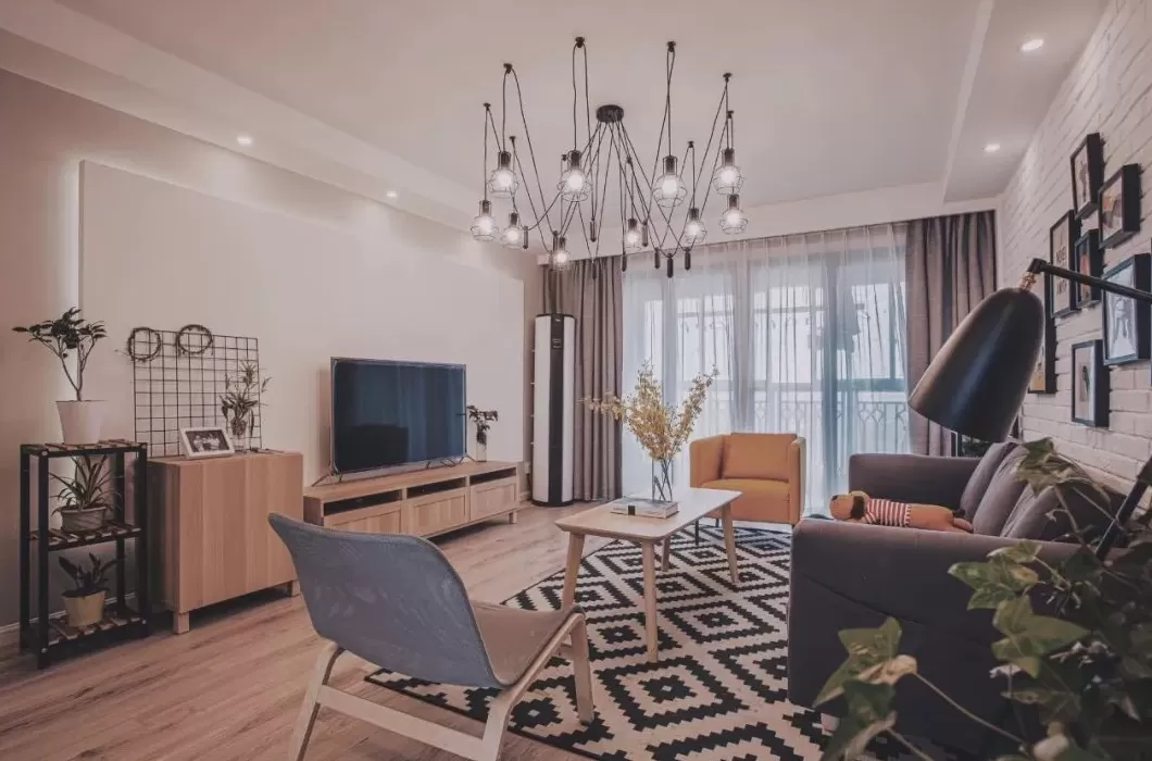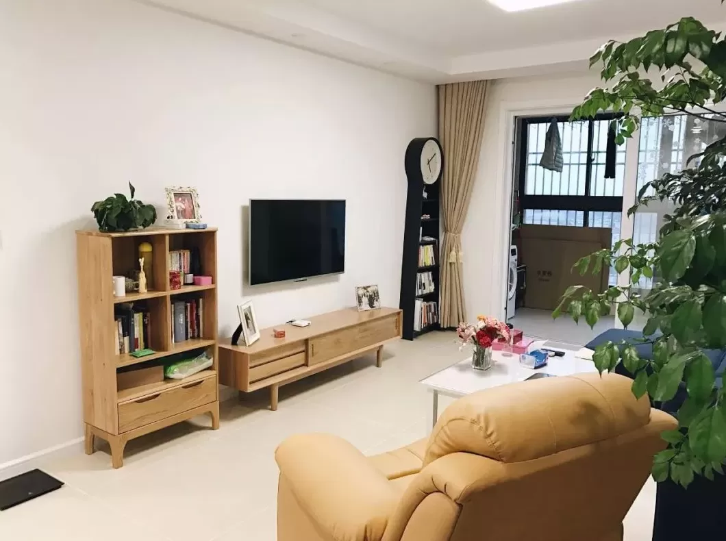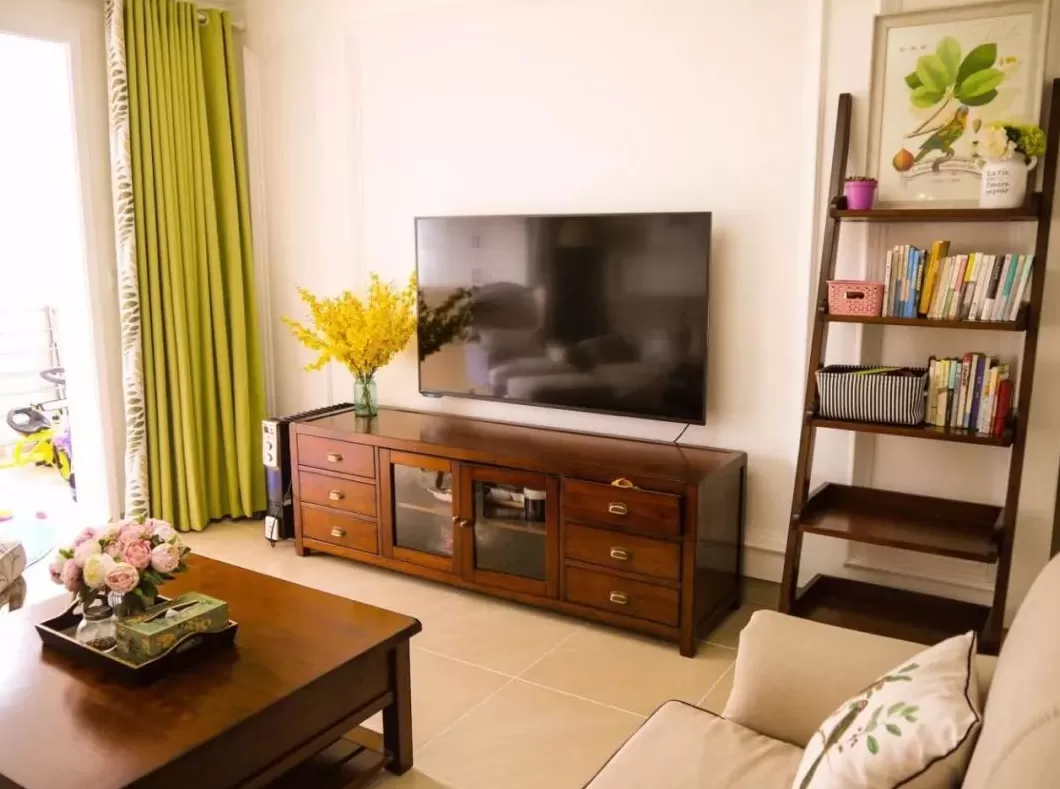 客厅空间的收纳位置不够,在电视柜旁放多一个小斗柜,丰富了电视墙的单调设计,又带来了实用的收纳储物。
