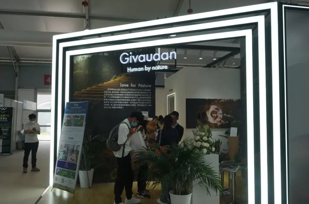 香精香料国际龙头奇华顿的展台离入口不远。此次展出了不少精油、净油等香料产品,包括薰衣草、大马士革玫瑰、天竺葵、没药等,以及成品香水、消费品香精、化妆品活性成分等。