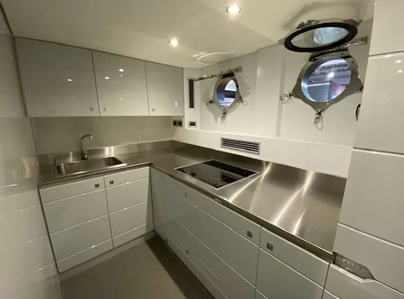 作为心脏部位的机舱,两台1900马力的MAN发动机就位于这里,可以给船提供足够强大的推力。