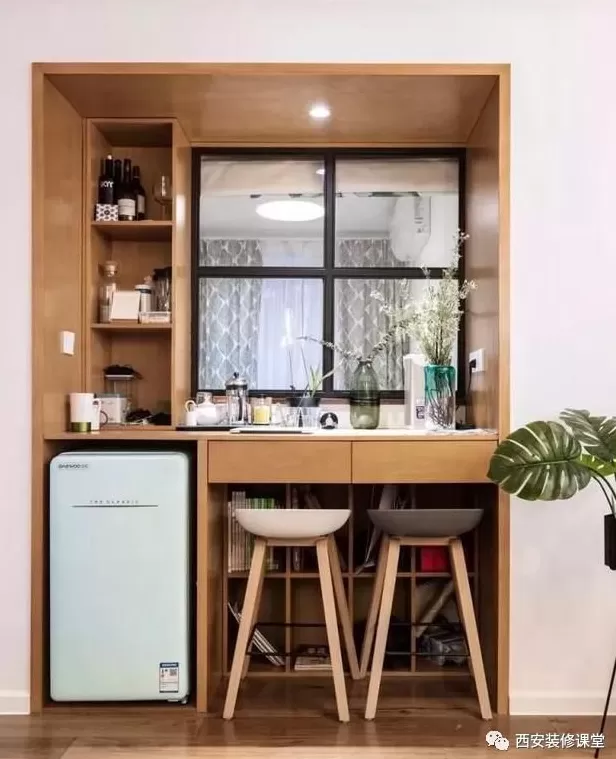 如果家里地方小或者为了配合风格,也可以购买成品的水吧台,无需定制,也可以满足基本功能
