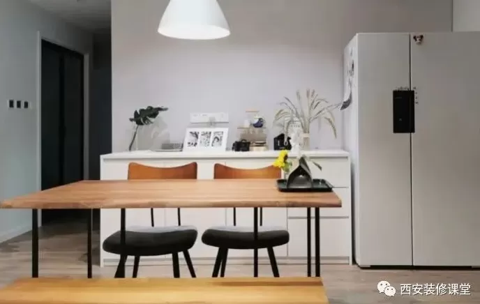 ▲如图成品的斗柜满足水吧台的功能,同时视觉上弱化一下冰箱的突兀感