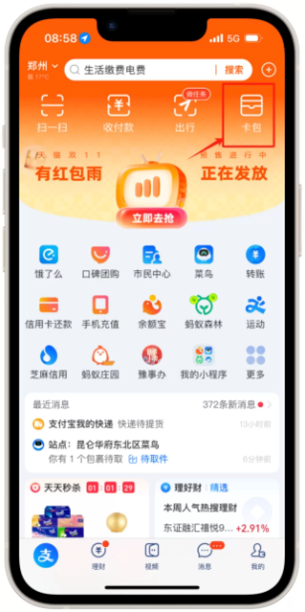 补贴资格领取成功后,到参加活动的线下门店购买本次活动的13类商品时,可在“支付宝”APP点击“卡包”查询“郑州家装厨卫焕新补贴”资格,选择优惠资格点击“去使用”,即可扫商家收款码付款立享政府补贴,线下购买商品时,支付应在上午9时至晚上23时之间完成。